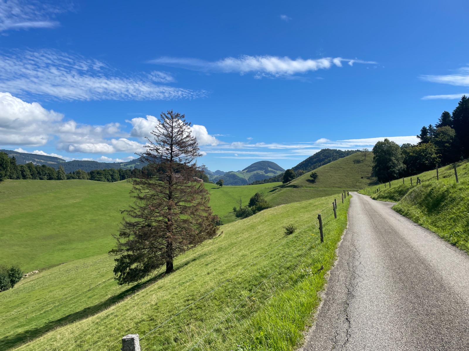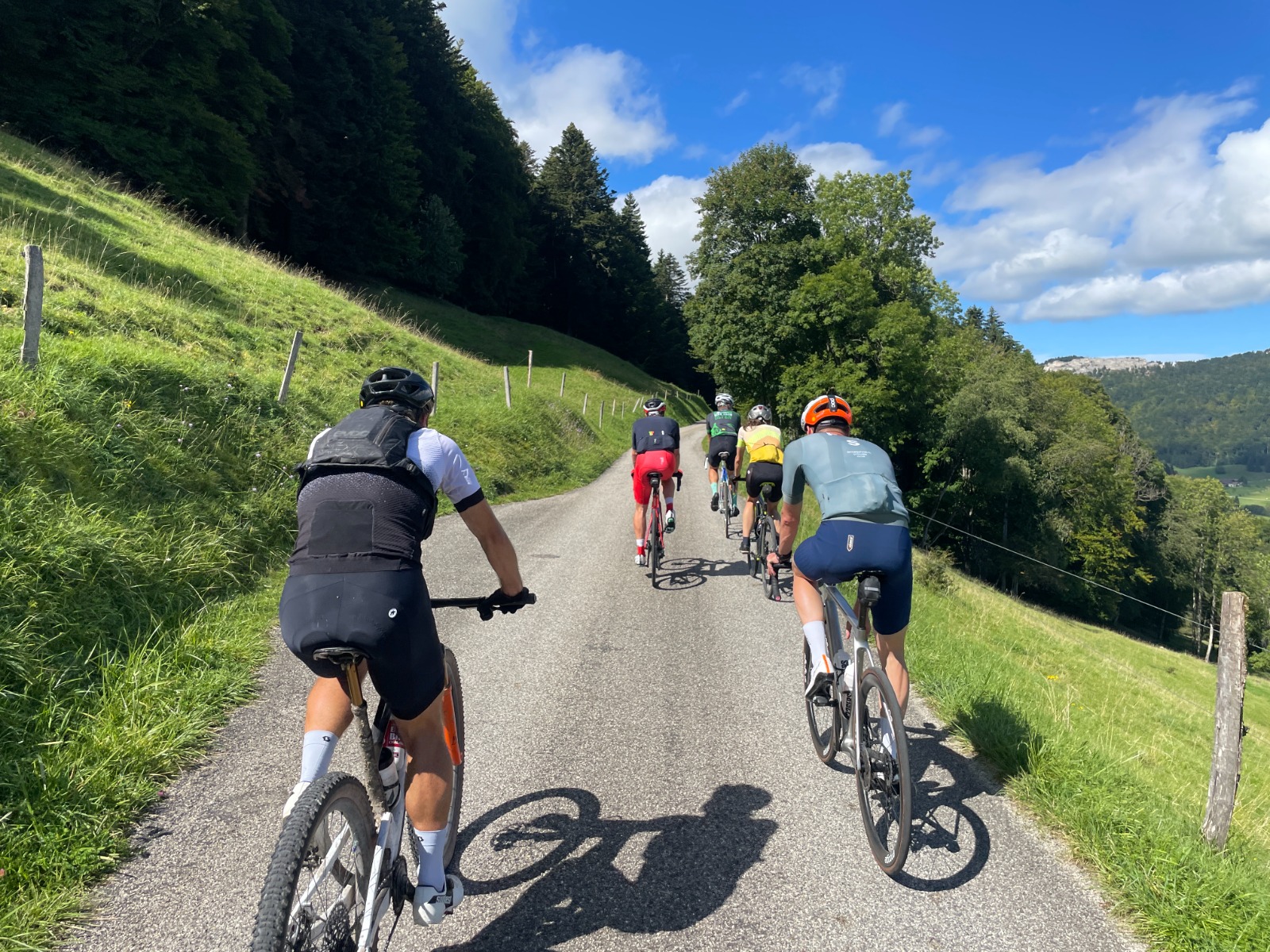 Nach der Abfahrt entschieden wir uns für den «Goldstandard» in Sachen Kaffeestop und fuhren aus dem Thal Richtung Café Knaus in Oensingen. Res, Nicole und Alex fuhren dann direkt zurück nach Olten. Martin, Marcel und Armin fanden den Weg zurück ins Thal und bogen vor Mümliswil auf den Geheimtipp «Farisbergweg» ab, welcher wieder auf die Breitenhöchi führte. Solche Wege sind beste Werbung für Radfahren auf den Jurahöhen. Kaum Verkehr, keine Mittelstreifen, knackige Steigungen und ein wunderschönes Panorama.