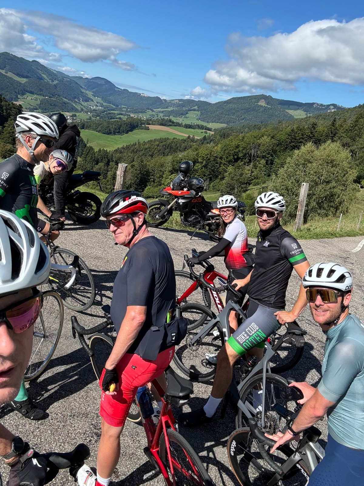 Am letzten Augusttag im 2025 fanden sich ein paar Rennradfahrer bei Kaiserwetter auf dem Pumptrack ein. Darunter befand sich auch ein potenzielles Neumitglied, das sich sofort super in die Gruppe integrierte.