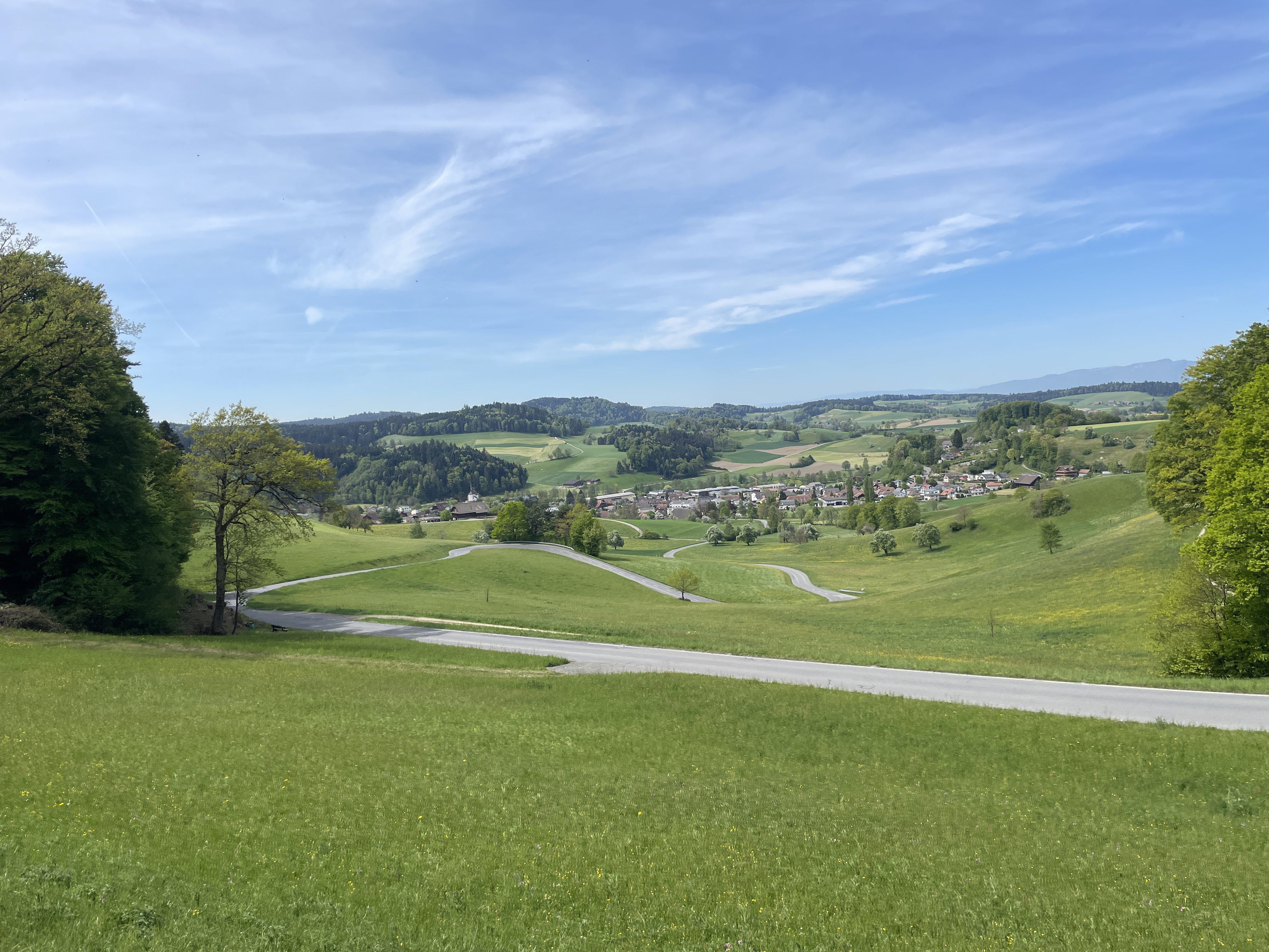 Das Einrollen begann mit einer, durch den Rückenwind begünstigten, hohen Geschwindigkeit. Um dem Motto «Social Ride»* gerecht zu werden wurde das Tempo danach etwas gedrosselt und wir fuhren Richtung durch flaches Terrain nach Herzogenbuchsee. Durch einen Schlenker hatten wir danach den Wind im Gesicht, doch dank des coupierten Geländes hielt sich dessen Einfluss in Grenzen.